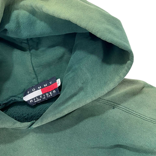 TRASHED TOMMY HILFIGER GREEN HOODIE WITH RED AND WHITE LOGO (M-L)