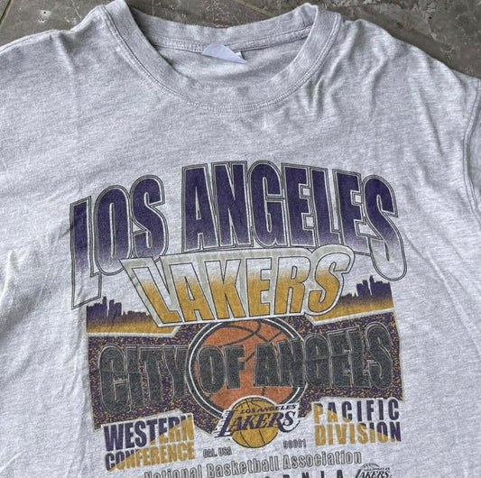 90s LOS ANGELES LAKERS GREY GRAPHIC TEE (L)