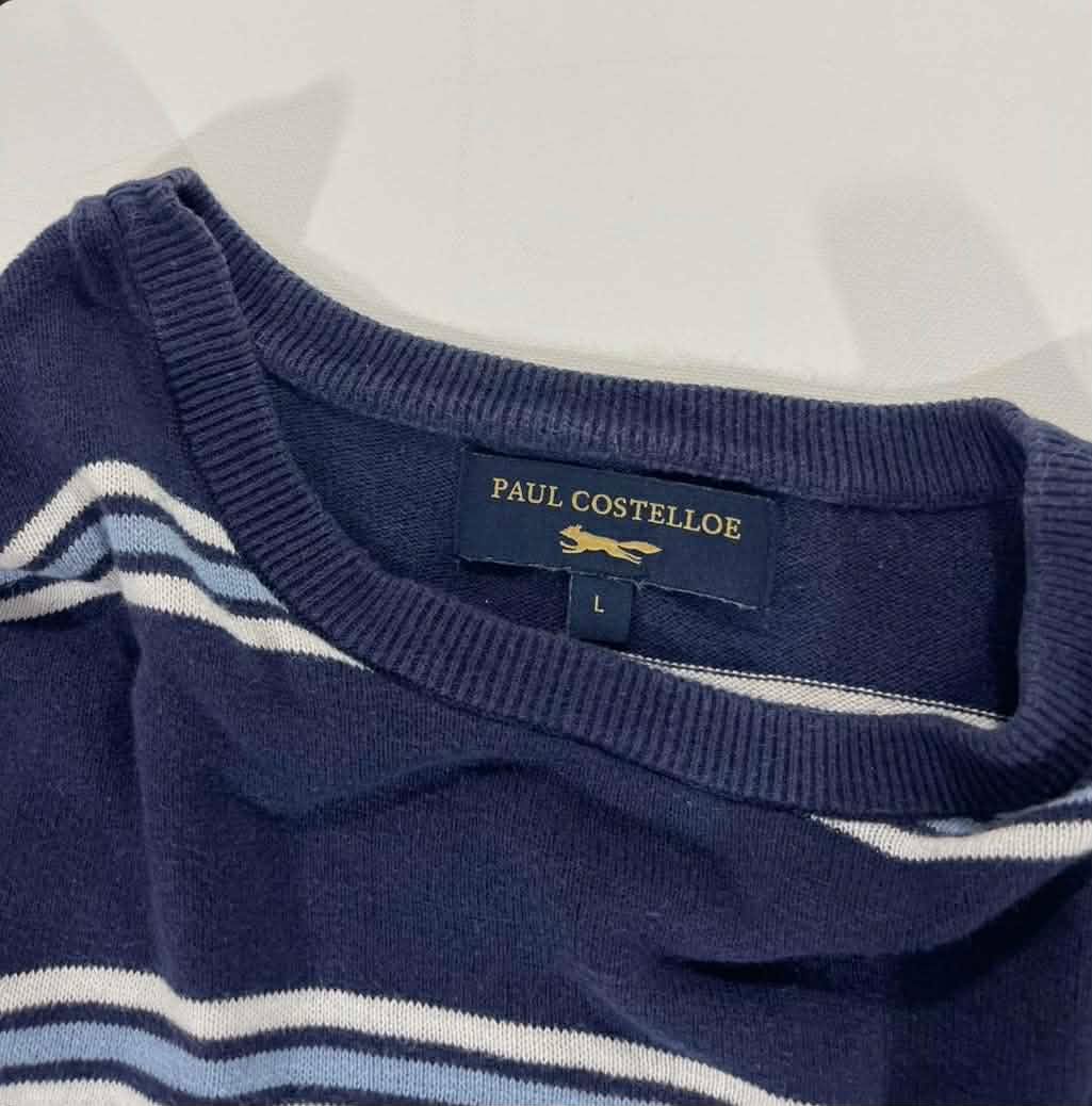 VINTAGE PAUL COSTELLOE BLUE STRIPED LONG SLEEVED SHIRT (L)
